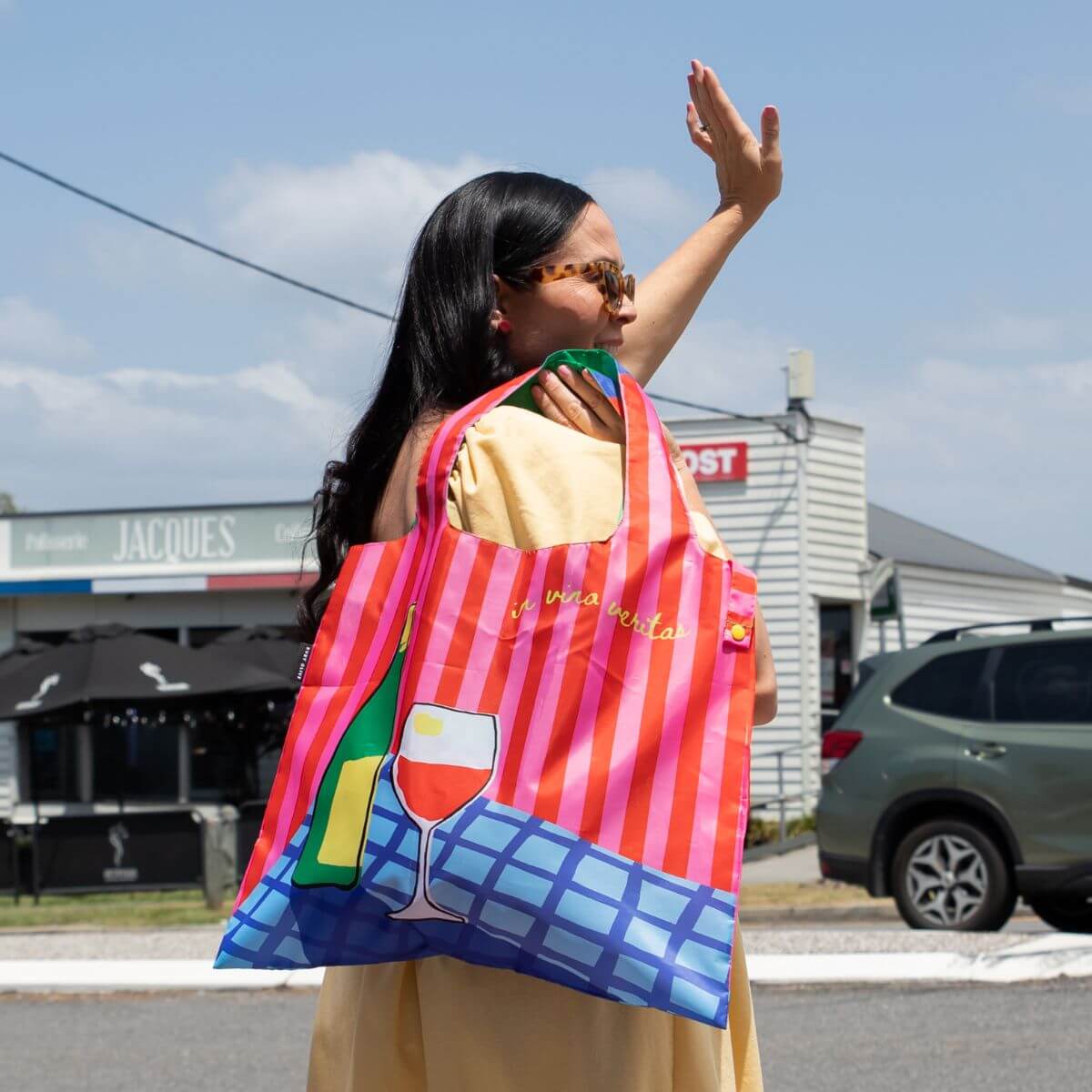 A toast to life’s little indulgences. With bold stripes, a bottle, and a glass of red ready to pour, this bag is for those who sip with style and speak the truth with a smile. “In Vino Veritas” – in wine, truth – and in this bag, plenty of personality.