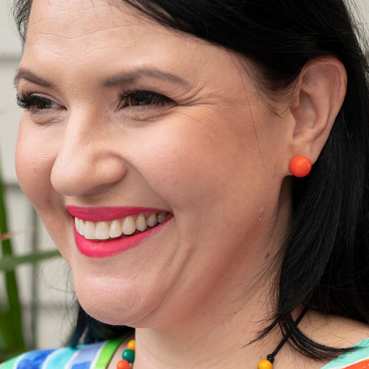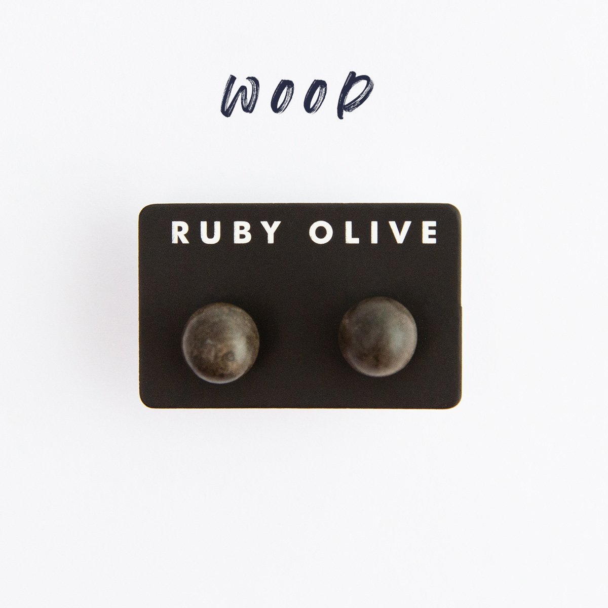 Our lovely Round Stud Earrings are made using either sustainably sourced, recycled wood (labelled 'Wood' in the image) OR hand poured resin and are finished with nickel free posts for sensitive ears.